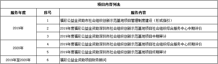 (2)2020年9月底前完成2019年度福彩公益金资助深圳市社会组织创新示范基地项目终期专项审计工作社会组织综合服务中心终期评价。