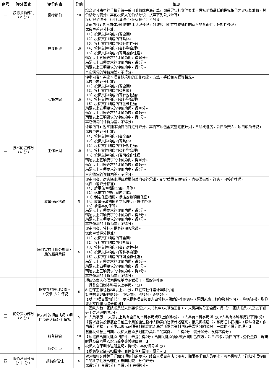 评审小组会按综合得分由高到低的顺序排出各有效投标的名次,得分最高的投标人为本项目中标人。评分指标如下: