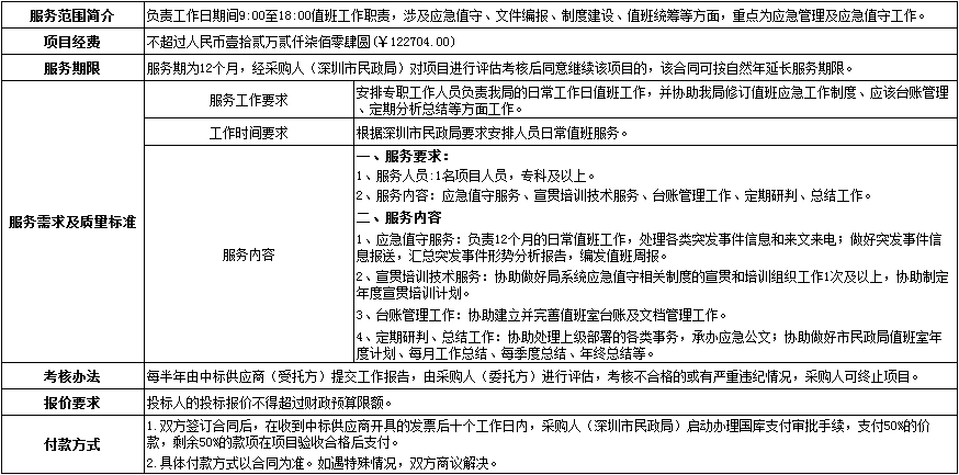 (一)项目名称:深圳市民政局购买应急值班服务项目