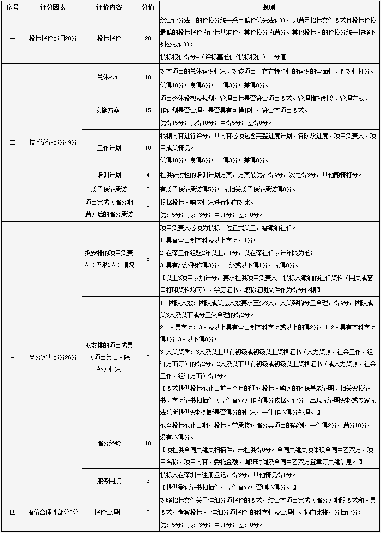 评审小组会按综合得分由高到低的顺序排出各有效投标的名次,得分最高的投标人为本项目中标人。评分指标如下: